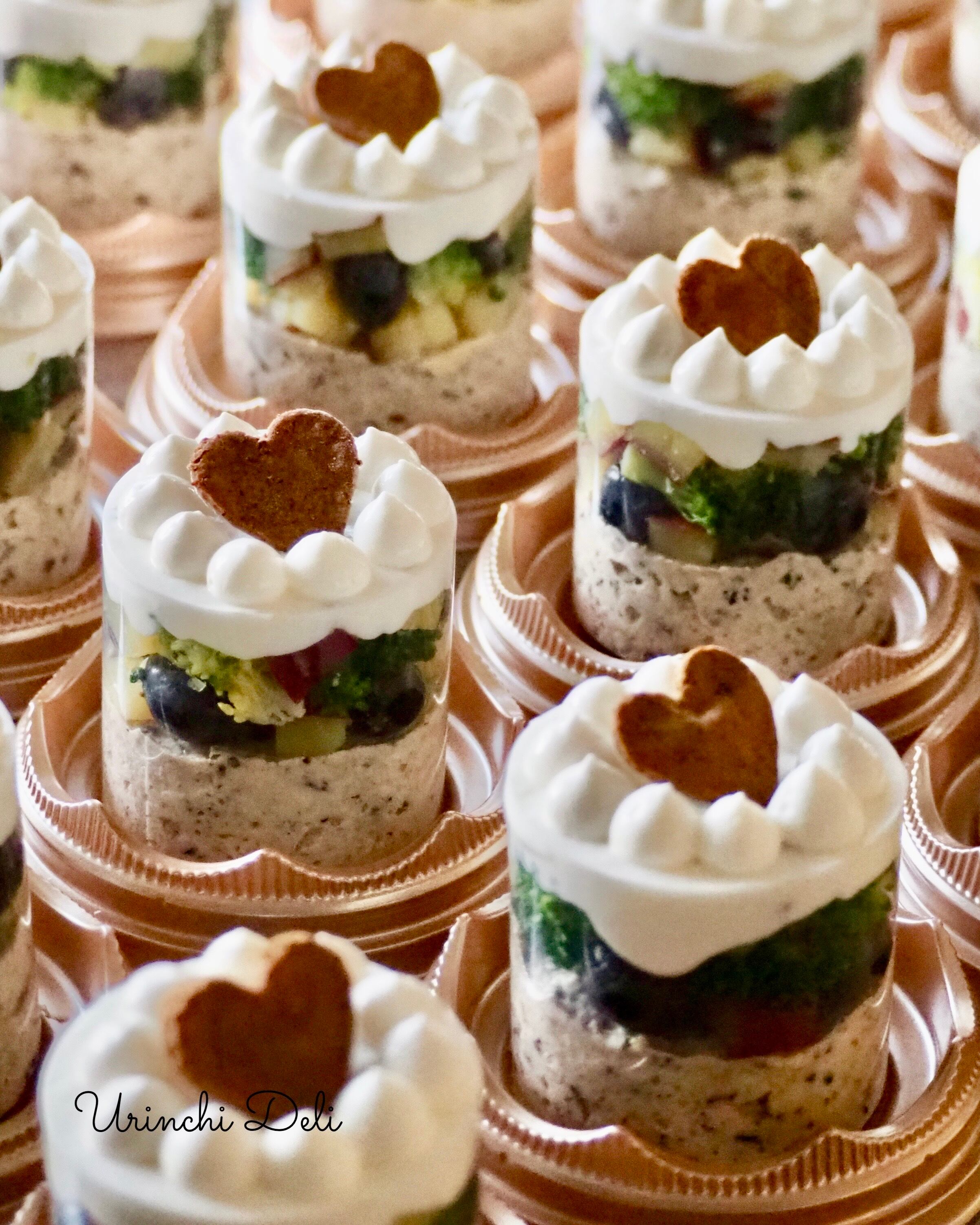 その上にフレッシュなブルーベリーとさつま芋、ブロッコリーを彩り良く重ね、