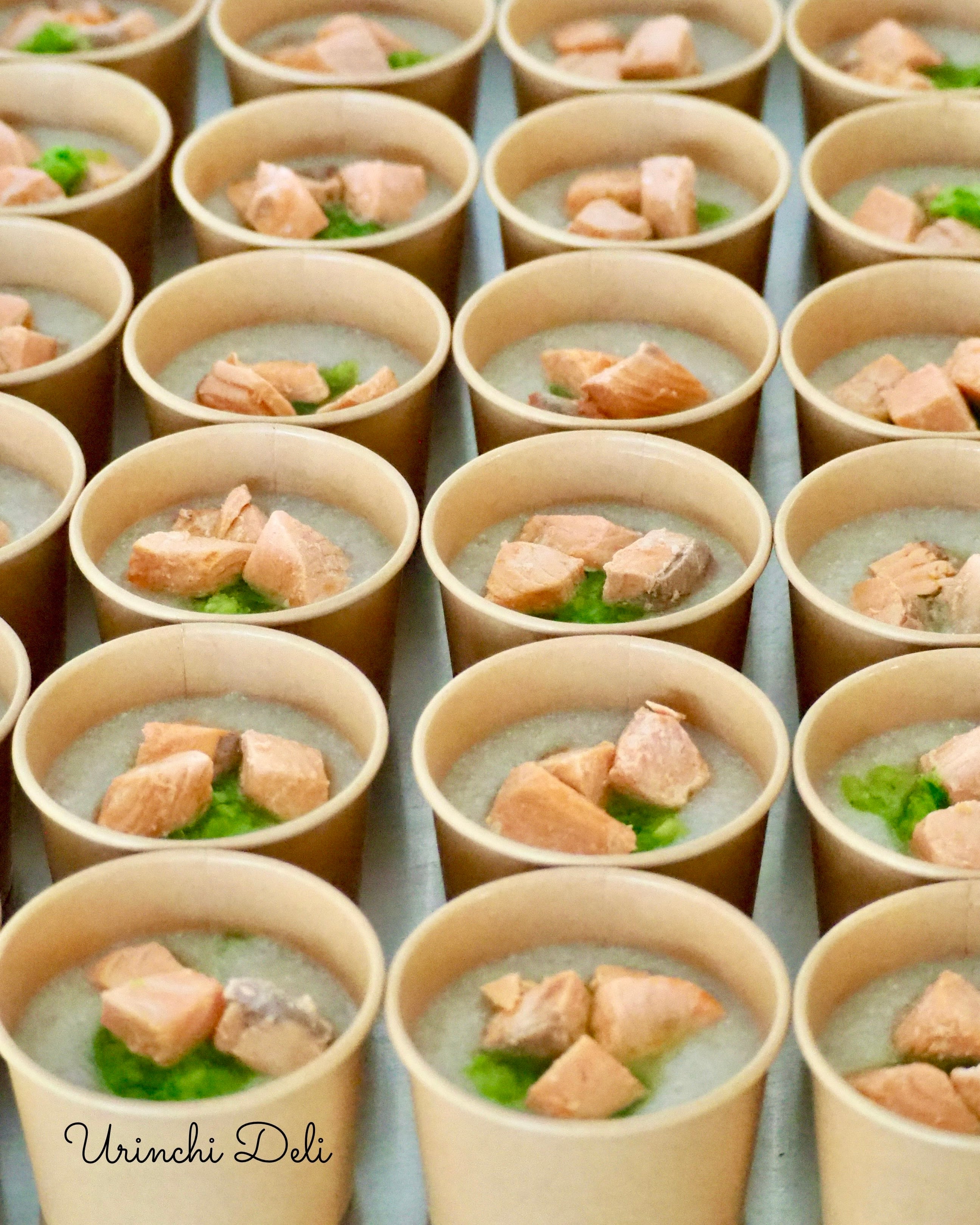 スープ(かぶ、豆腐、えのき、大根、里芋、蓮根、鰹節、昆布)、鮭、かぶの葉